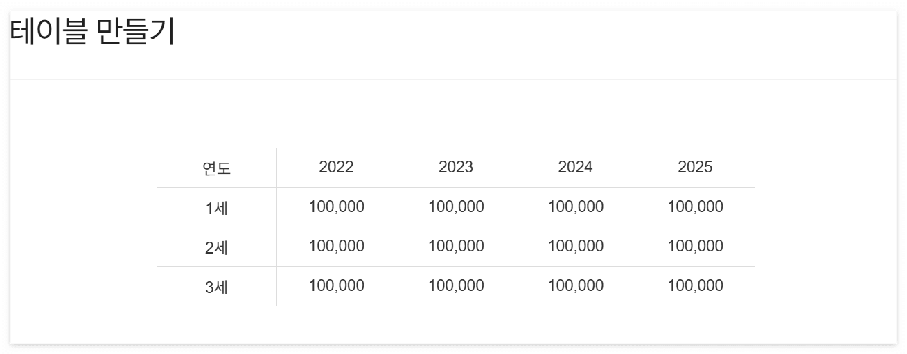 아래에서 테이블 만든는 방법과 테이블 가운데 정열하는 방법까지 상세히 설명드리겠습니다.