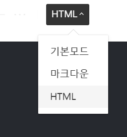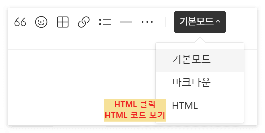 페이지 우측 상단에 HTML 모드를 선택후 코드 확인 모습입니다.