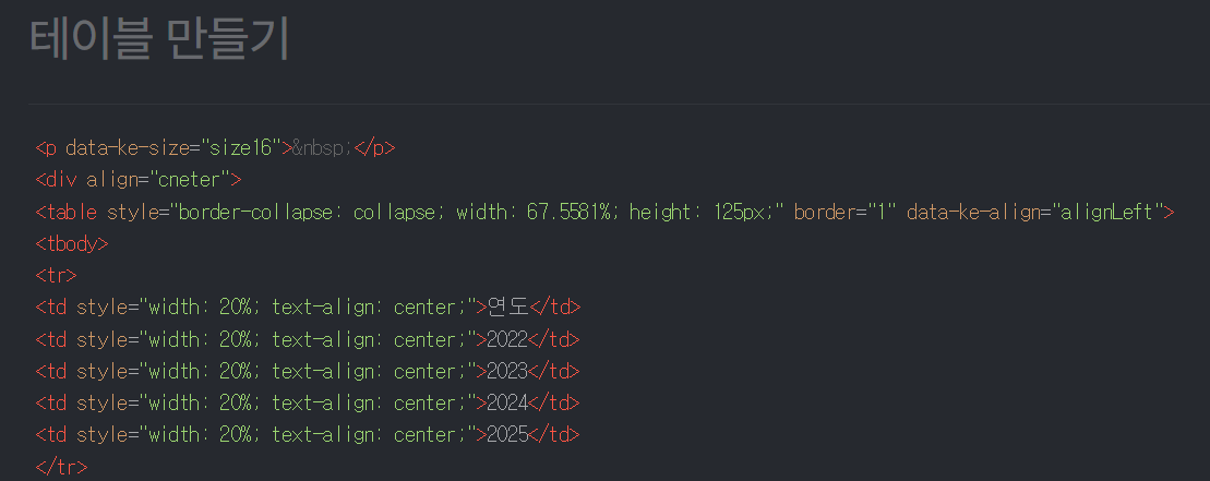 티스토리 테이블 만들고 가운데 정열 위한 HTML 코드 수정